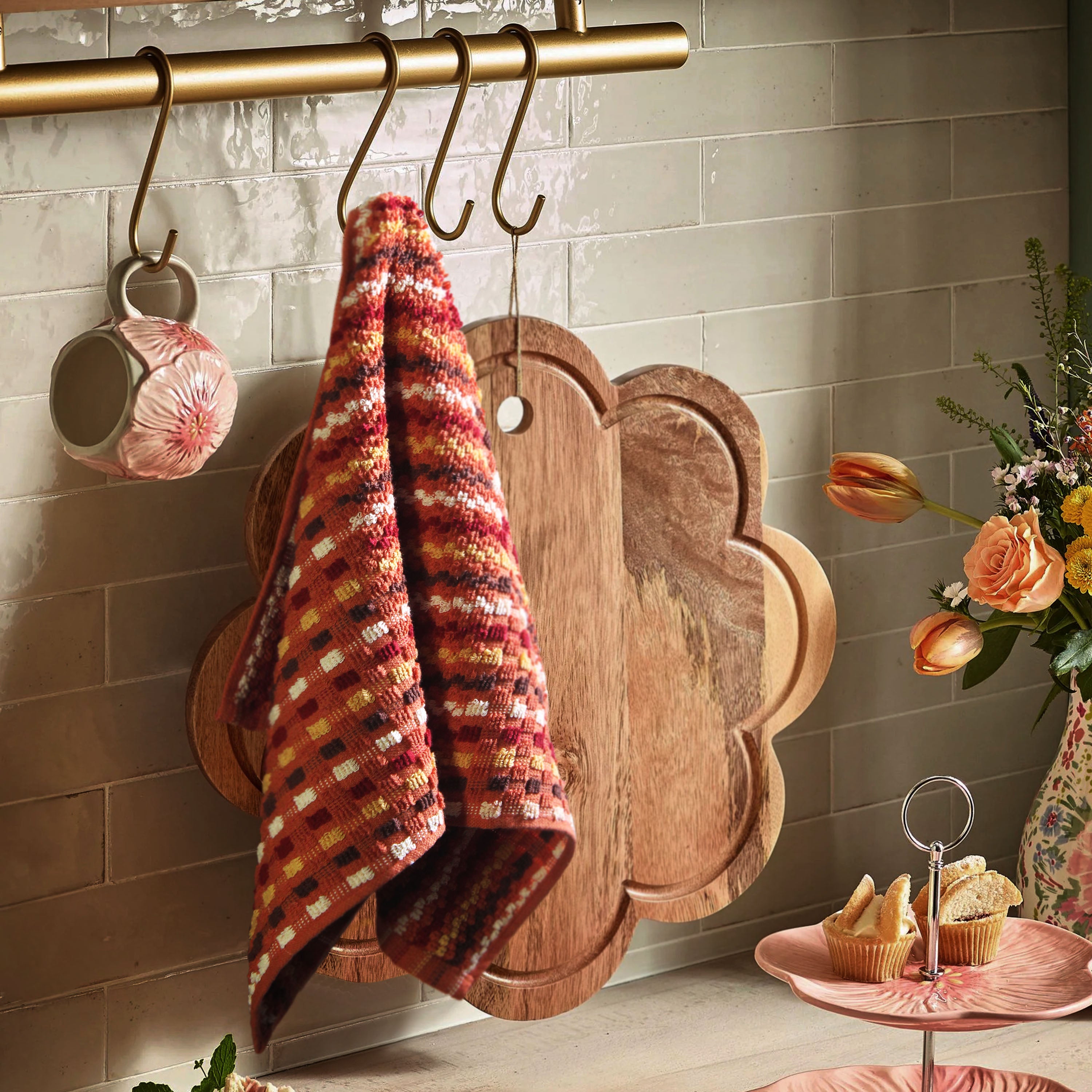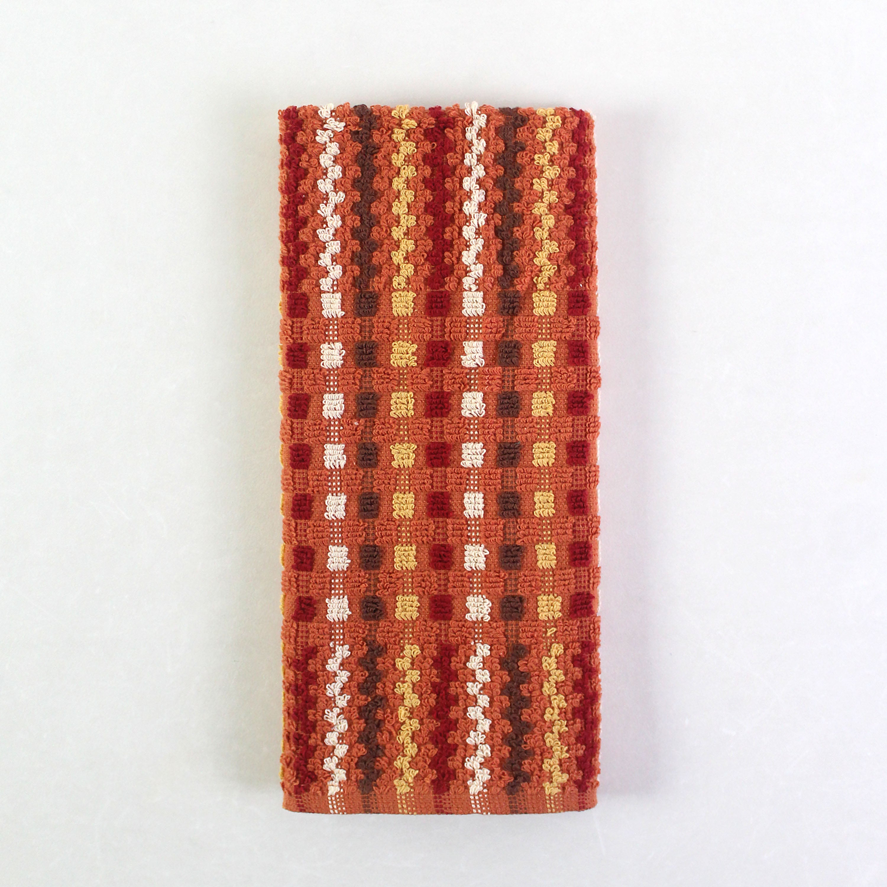 A charming duo of yarn-dyed kitchen towels - one in warm rust checks, the other in soft ivory - made to bring both personality and practicality to your space. Crafted for durability and absorbency, each towel measures 15 x 25 inches, the perfect size for drying, wiping, or adding a little style to your counter. Set of 2.